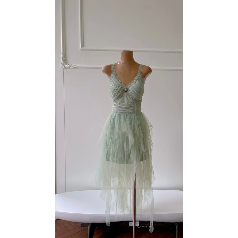 V Neck Green A Line Tulle Formal Dress Evening Party Dress J7162