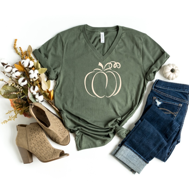V-Neck: Swirly Pumpkin (Cream)-Plus Sizes