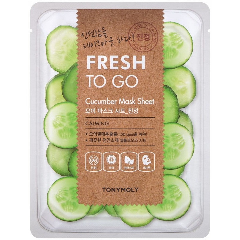TONYMOLY Fresh To Go veido kauks pripildytos stipri, od puoseljani ingredient, kurie akimirksniu suteikia reikiamo drkinimo ir atgaivina od.TONYMOLY Fresh To Go Cucumber Mask Sheet veido kauk su agurkais suteikia gaivinanio drkinimo ir vsinant poveik puiki