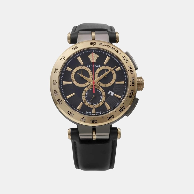 Versace Men Quartz Black Dial Chronograph Leather Watch VE6CA0323