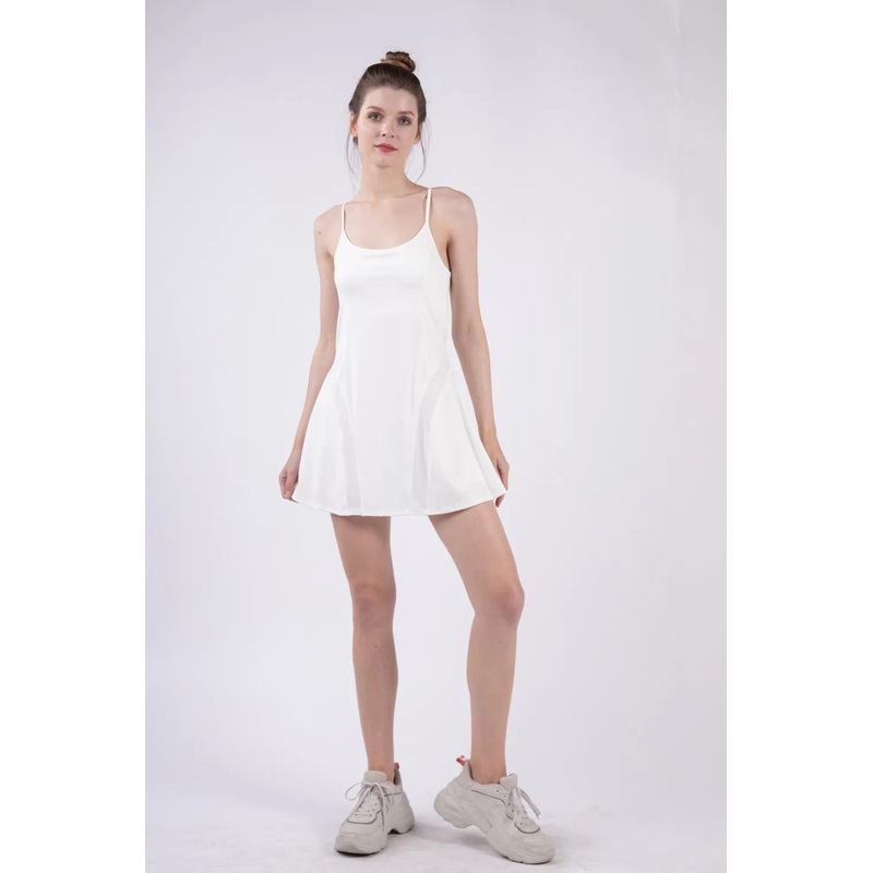 VERY J Mesh Detail Tennis Mini Active Dress with Shorts Inside White S