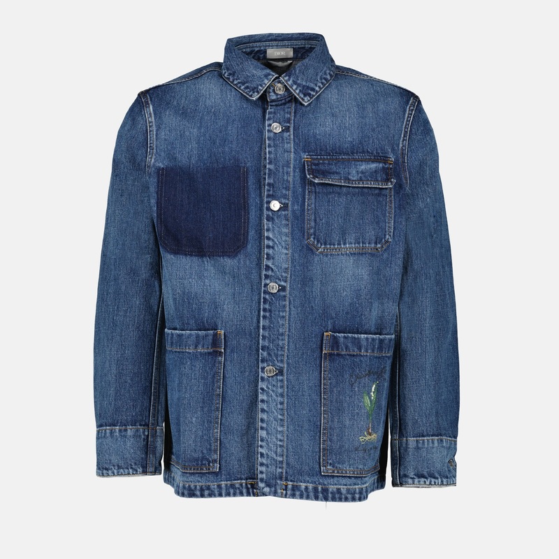 Veste en jean CD muguet Dior collection Automne-Hiver 2024 pour Homme. Ralis en denim. Article Couleur bleu moyen. Col classique et Manches longues.
