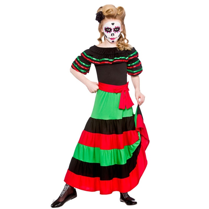 Vibrant Day of the Dead Celebratory Senorita Costume 5-7 Years