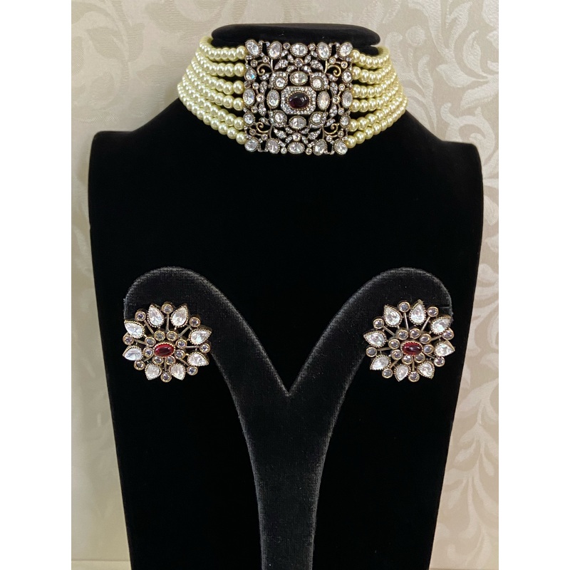 Victorian pendant choker | Pearls choker | Indian jewelry in USA Red