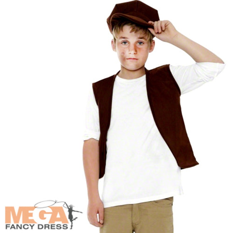 Victorian Urchin Boys Costume Kit Includes Waistcoat Hat Size Medium Ages 7 -9