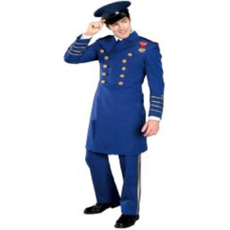 Circa 1912Includes: Double breasted captain's jacket w/gold trim & pants w/side stripes.Color: Blue (shown) Size: S (34-36), M (38-40),L (42-44), XL (44-46)