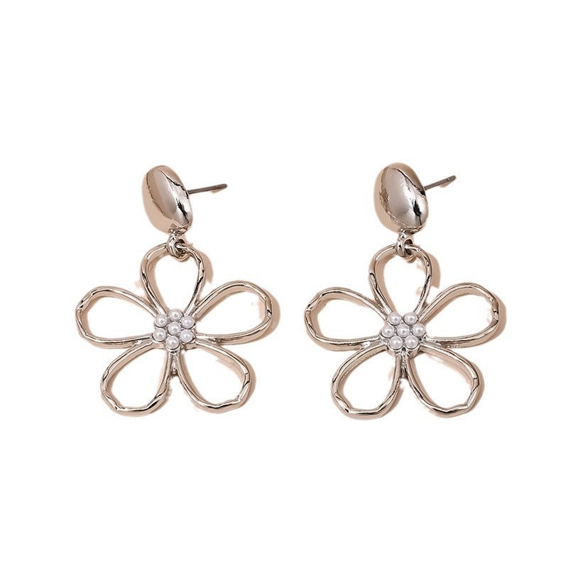 Vienna Verve Metal Flower Earrings with Pearl Detail