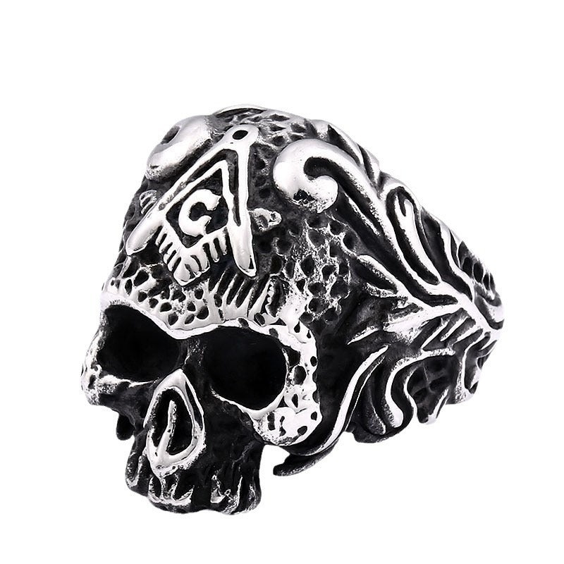 Vintage Freemason Skull Design Titanium Steel Ring for Men – Distinctive Jewelry Piece