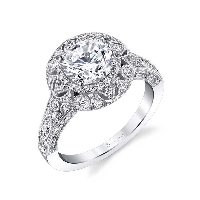 Vintage Inspired Engagement Ring S1866 14k White Gold