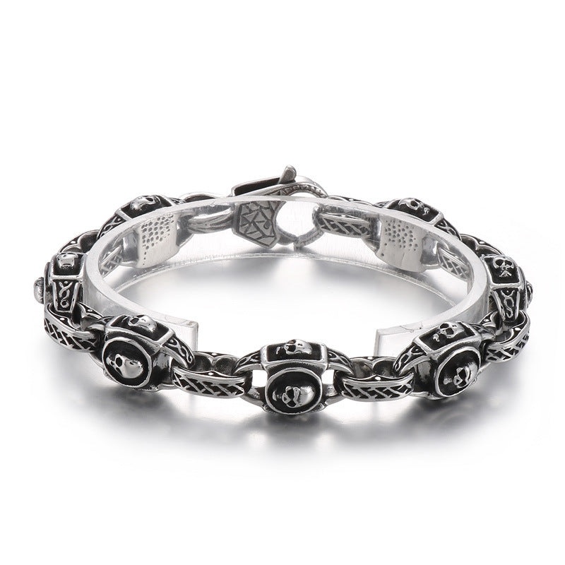 Vintage-Inspired Korean Skull Bracelet with Punk Pig Nose Design in Titanium Steel for Men