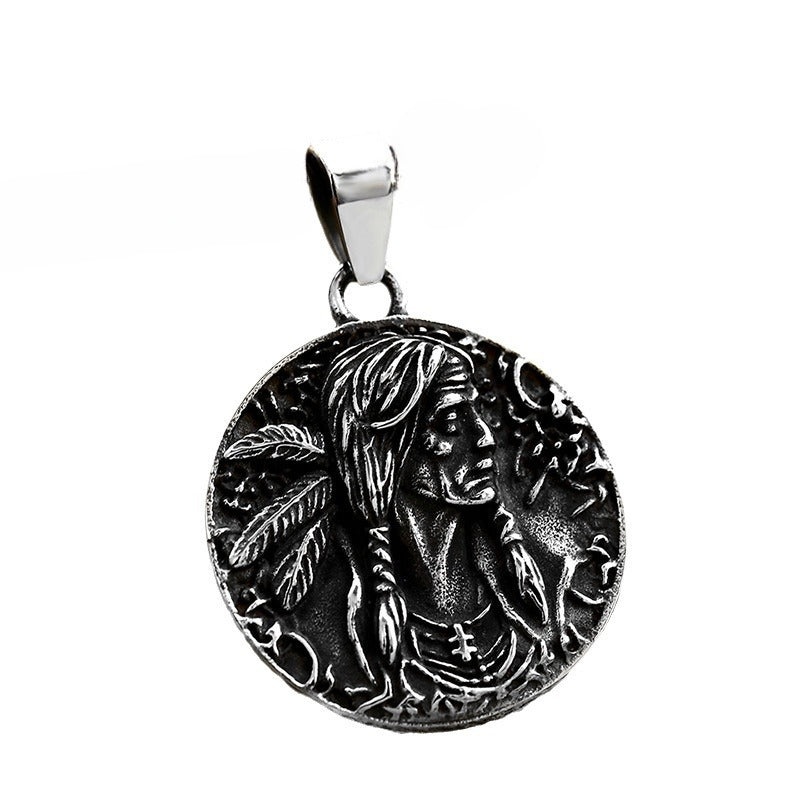 Vintage-Inspired Stainless Steel Casting Pendant for Men – Wholesale Titanium Steel Round Tag Jewelry