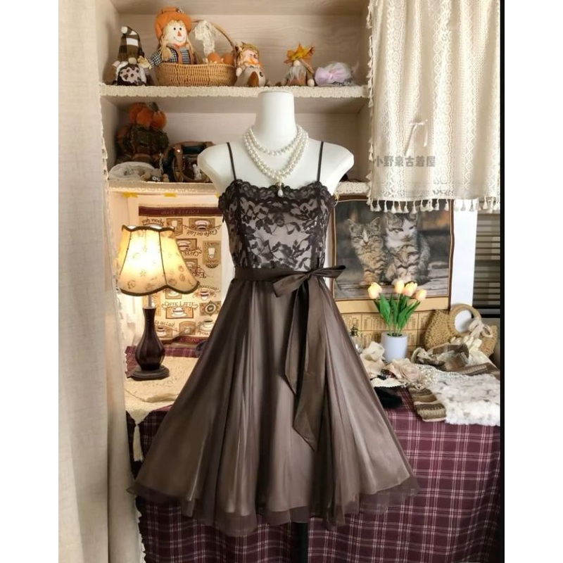 Be the first to review “Vintage Satin Lace A Line Short Party Dress Brown Homecoming Dress J7553”