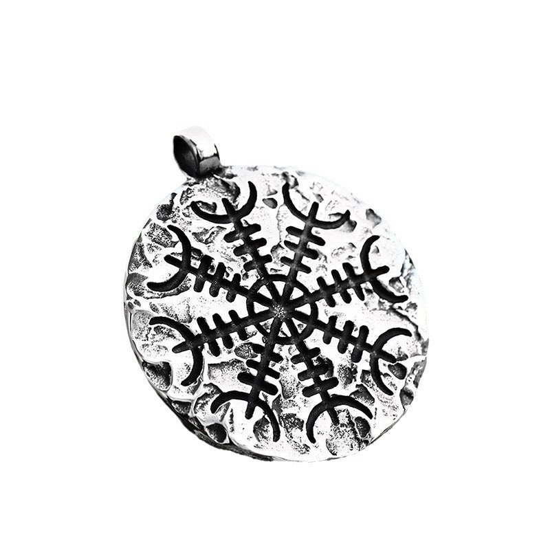Vintage Viking Compass Pendant in Titanium Steel for Men – Round Tag Jewelry