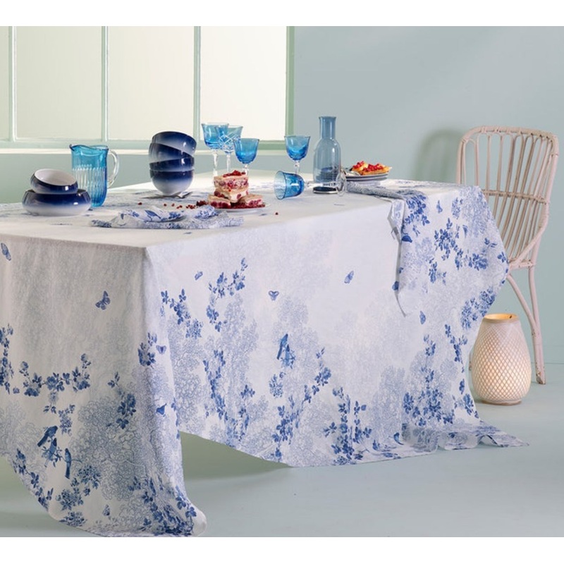 Voliere Bleu Tablecloth, 100% Linen