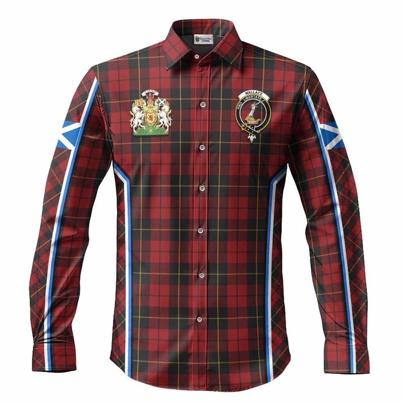Wallace Tartan Crest Long Sleeve Button Shirts Scotland Coat of Arm Flag Style