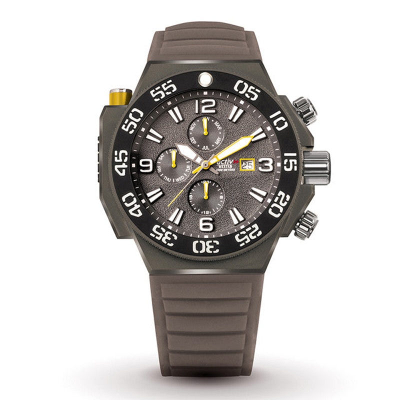 Watch technical specs Case Size48 mm Case MaterialStainless Steel BandSilicone Strap CaliberQuartz 9232/1920 Movement FunctionMulti-function Water Resistance10 ATM Warranty2 Years International