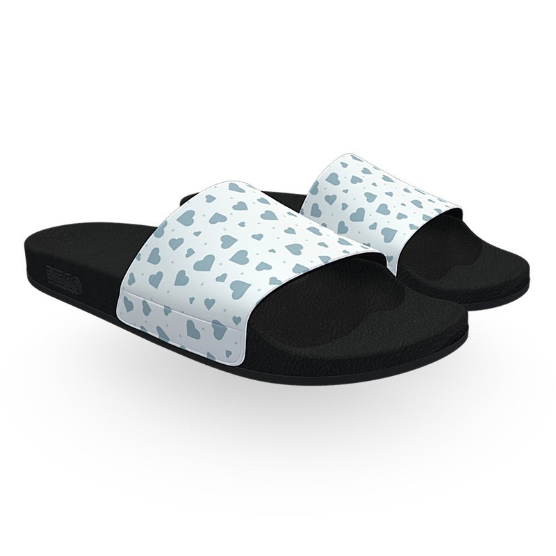 White and Gray Hearts Slide Sandals