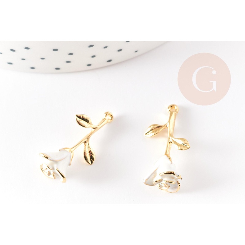 To make magnificent necklaces, earrings and bracelets, adopt these roses, raw brass flowers enameled in white. Length: 27mm Width: 14mm Thickness: 9mm Ring: 1.4mm It is a timeless support to use as is or to gild, silver according to your needs. Sold indivi