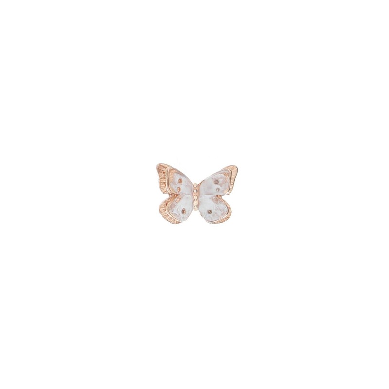 The three-dimensional white enamelled butterfly measures 10mm x 8mm.