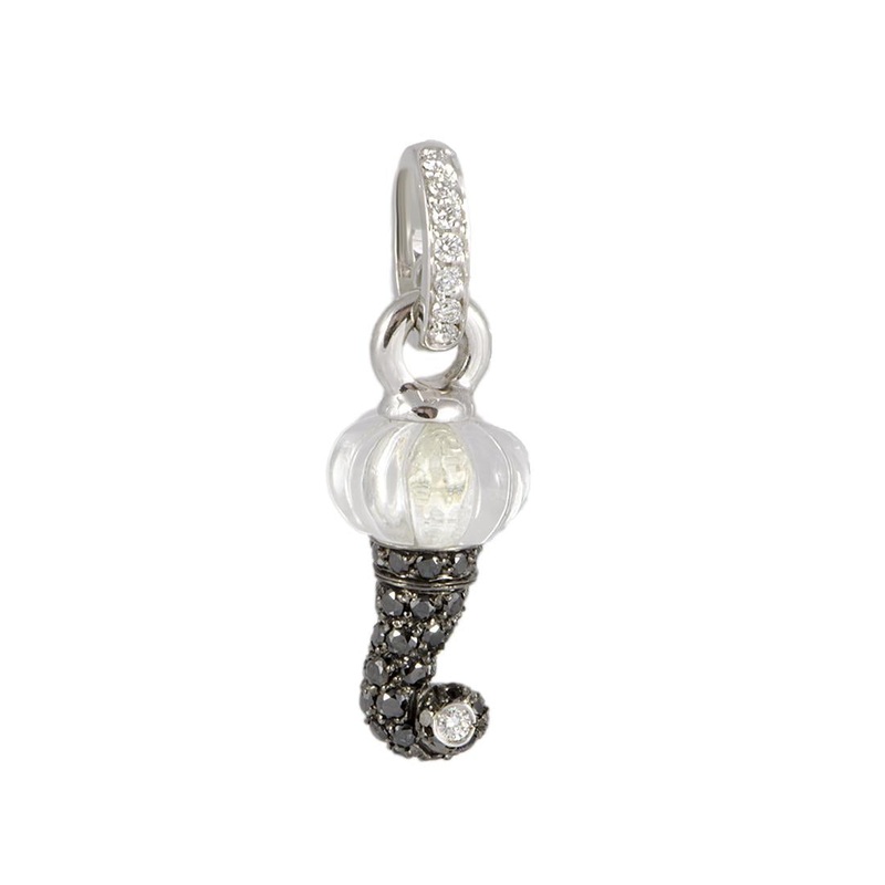 White gold croissant pendant, white and black diamonds and crystal – 22276