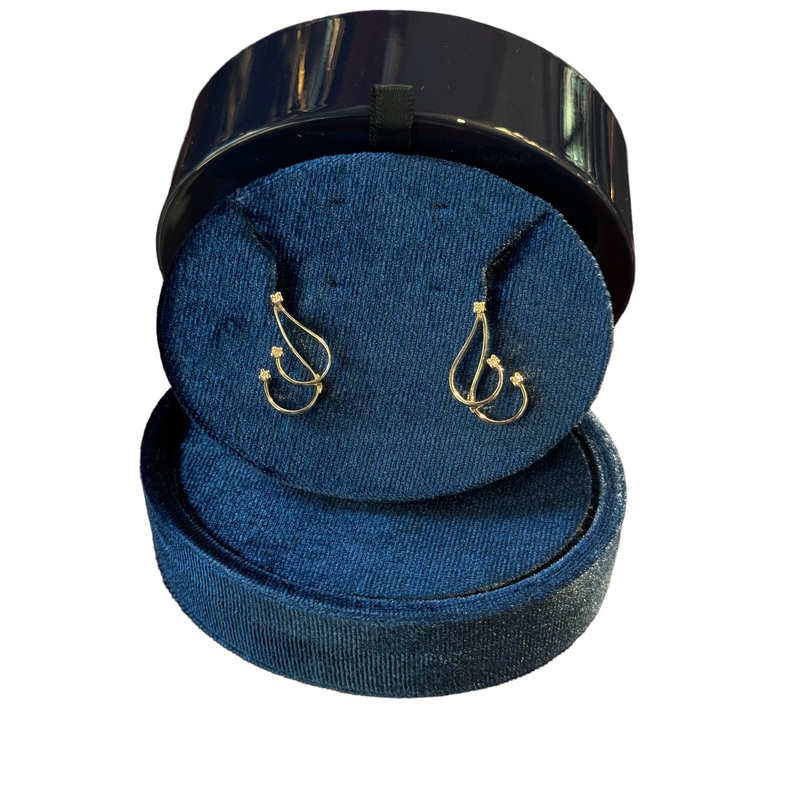 Brilliant cut earrings in white gold and diamonds with three light points Diamonds: 0.06ct 18kt white gold 4.70gr Color F Purity VS