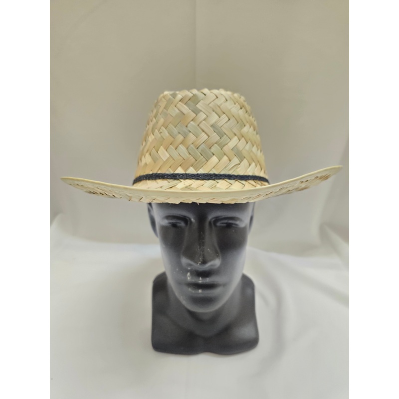 Wide Woven Straw Cowboy Hat with attached String BandAdult/One SizeF69118