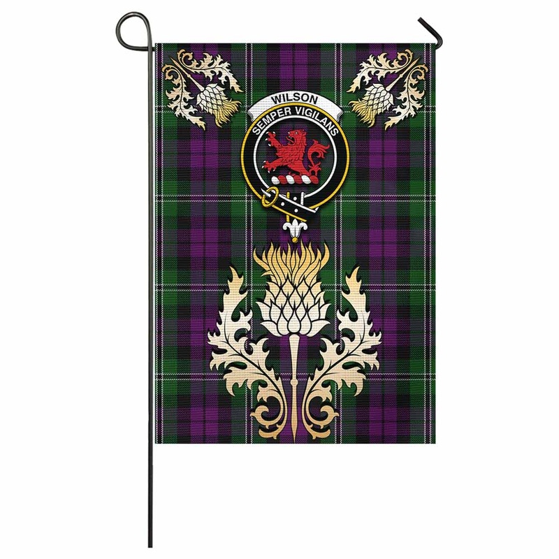 Wilson Tartan Garden Flag with Golden Regal Scottish Thistle Emblem
