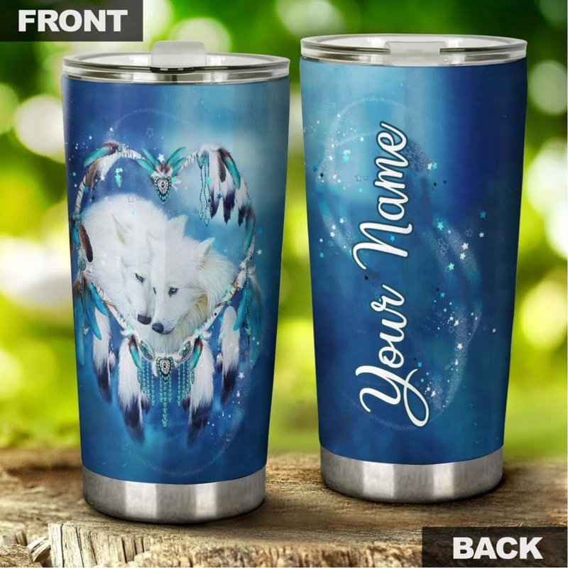 Wolf Couple Ice Heart Dreamcatcher Personalized Tumbler – Wolf Lover Tumbler- Birthday gift – gift for her for him – unique present