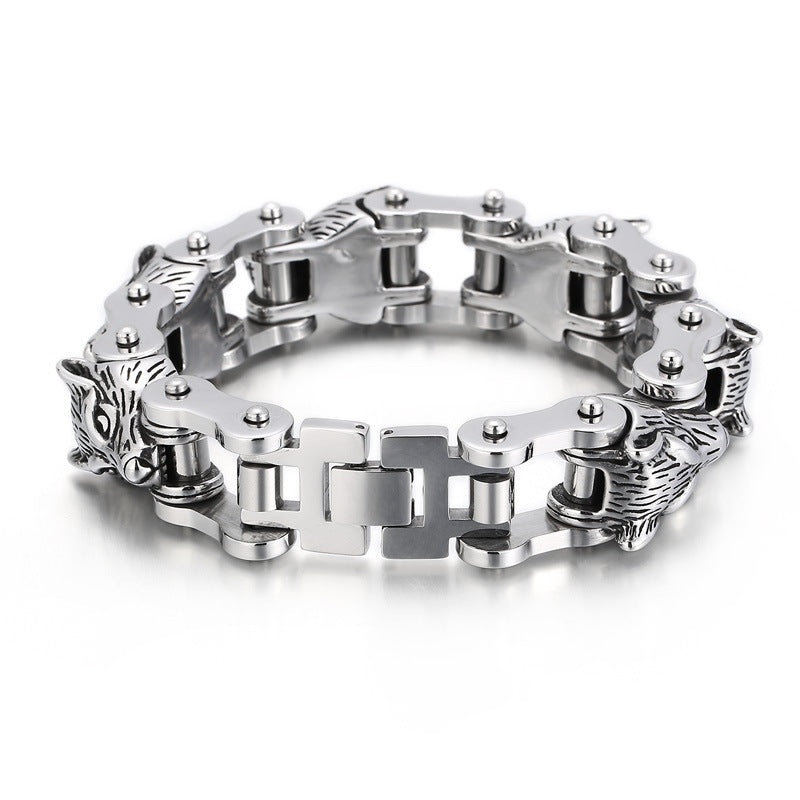 Wolf Head Titanium Steel Bracelet – European American Hip-Hop Style for Men