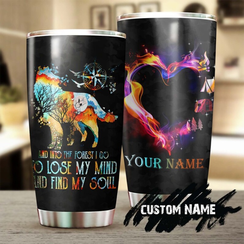 Wolf Into The Forest Find My Soul Personalized Tumbler – Wolf Lover Tumbler- Birthday gift – gift for her gift for him – unique present