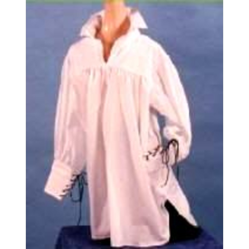 A24183 Great for Cavalier, Pirate, Renaissance.Includes: Comfortable cotton blouse with V-neck & a collar that can be worn up or down. Full cut sleeves with 6" straight lace up cuffs. Colors: White, Black, PurpleSize: One Size (8-14)
