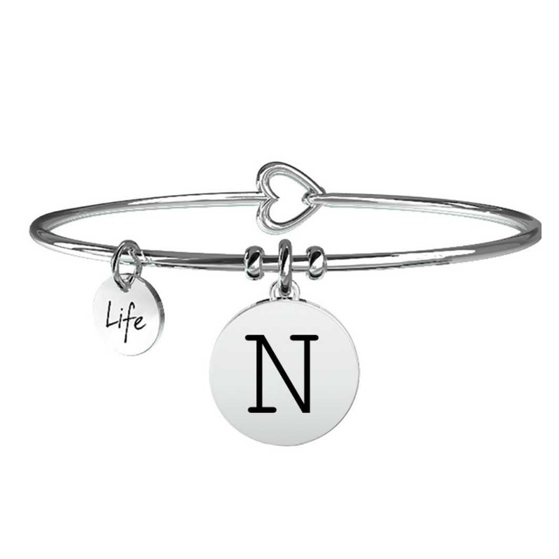 It is the initial of your name, of a special person or someone you care about. Your favorite letter, the beginning of a word, a sentence, a story. Life is an alphabet of emotions. Steel bangle with Initial N pendant. Enamelled engraving on the pendant and