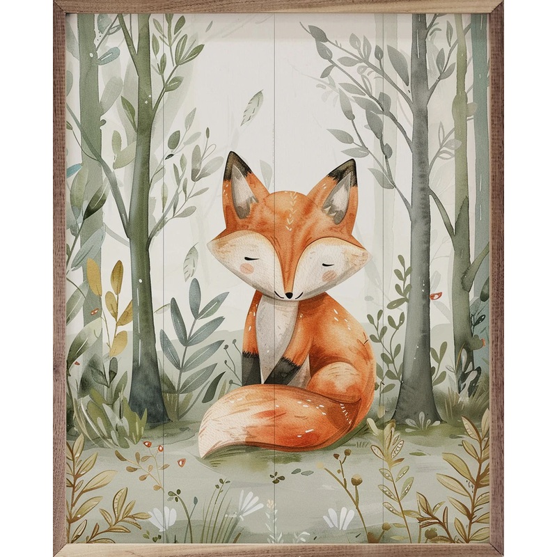 The Woodland Fox is an effortless means to infuse beauty and charm to a wall in the home or a child's room. Crafted from high-quality American hardwood planks, it features a hand-painted face and is adorned with a vibrant design printed using UV cured ink.