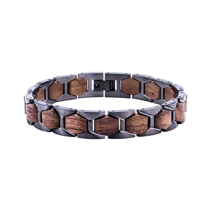 Wood and steel fusion bracelet with 12mm wide links. Pair it with a watch or wear it by itself. Comes in an engraveable wooden box.