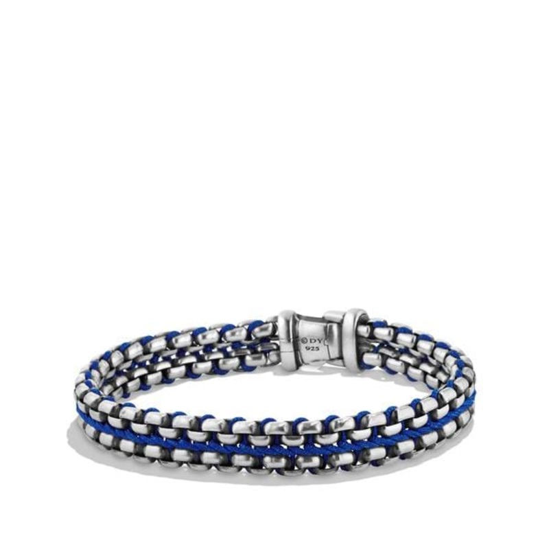 Sterling silver Blue nylon cord, Bracelet, 12mm wide Lobster clasp M