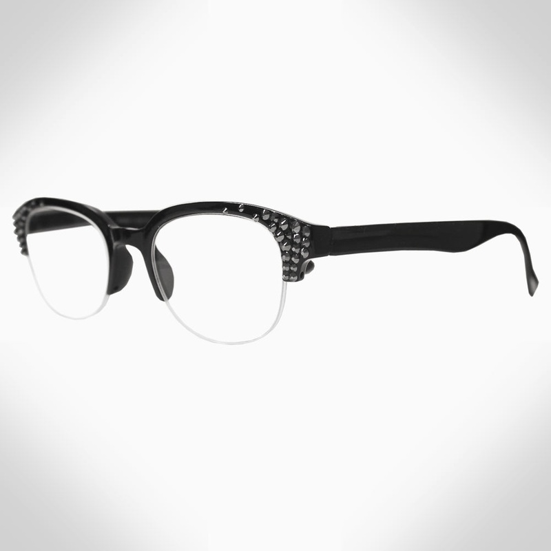 Halfway rimless readerEmbellished with crystals, which are set by Jimmy Crystal's expert craftsmanship. This product provides unparalleled aesthetics to transcend elegance.Embellished with crystalsIncludes both a case and a pouch