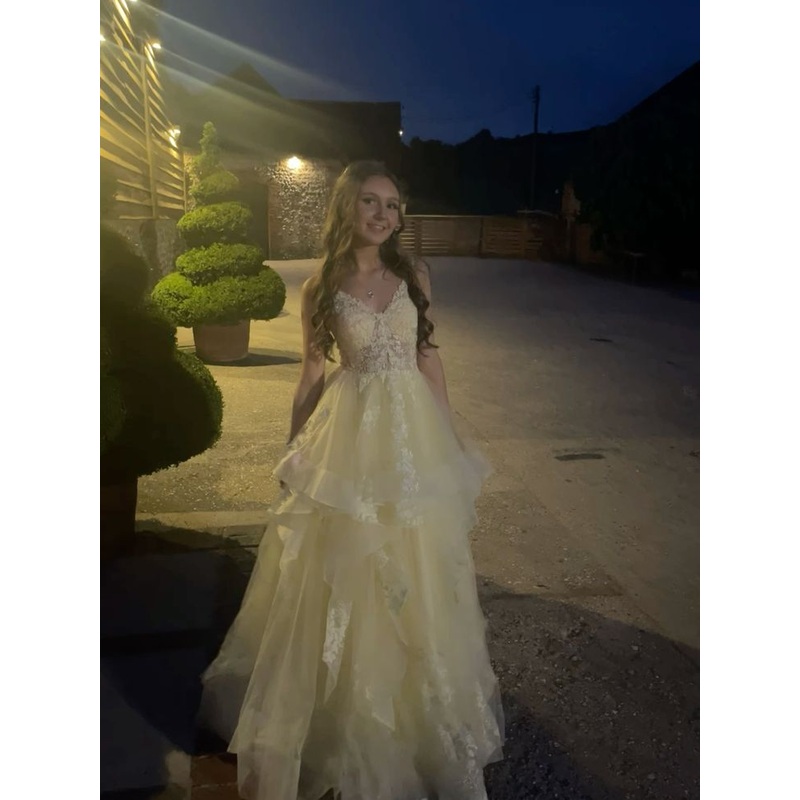 Yellow A Line Ruffle Prom Dress Formal Party Graduation Dress J6782