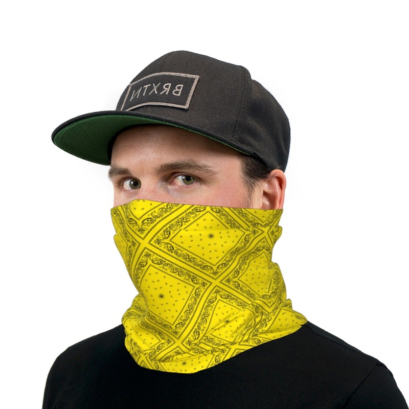 Yellow and Black Bandana Paisley Neck Gaiter Face Mask
