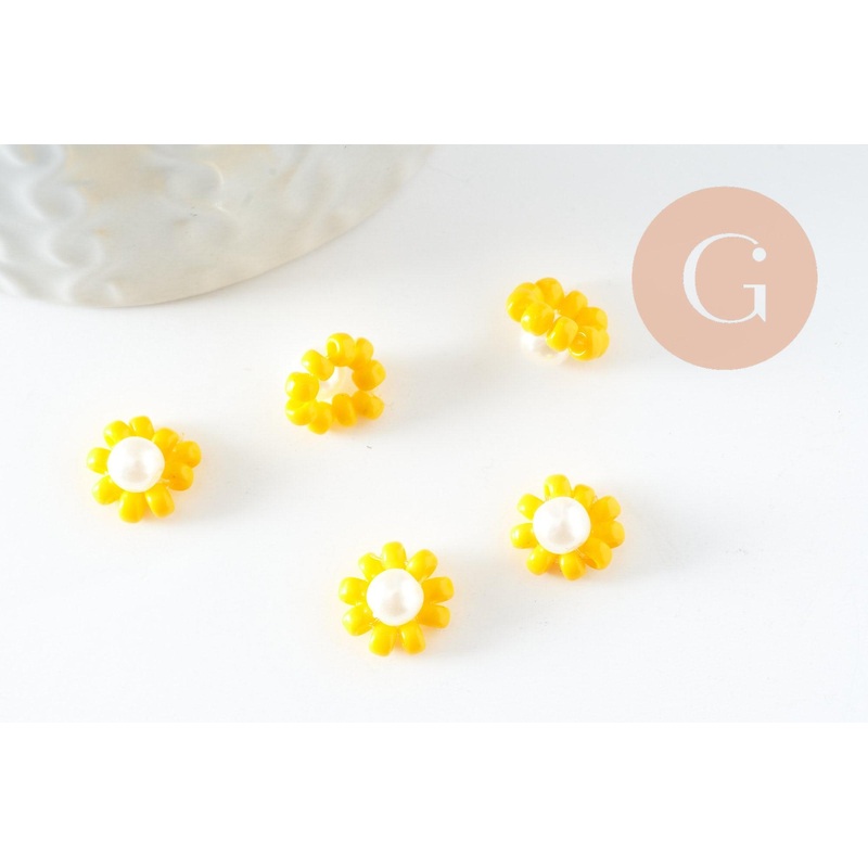 A pretty set of yellow glass seed flowers, to make plant jewelry, gri-gris and jewelry to offer. they are also ideal findings to combine with bracelets, necklaces and buckles. Length: 10mm Thickness: 5mm Hole: 1.2mm Seed beads and faux pearl in ABS plastic