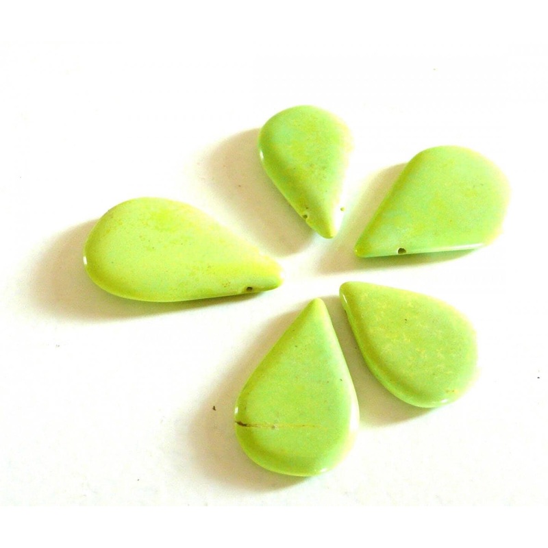 These yellow-green flat howlite drop beads can be used to create jewelry, such as necklaces, bracelets or even earrings. Mix them with other beads (like seed beads) or stones or charms to have something original and in your image. length: 2.5cm, width: 1.5