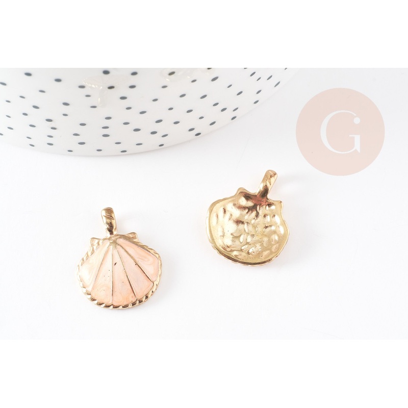 Zamac gold shell pendant in pink beige 24.5mm, shell pendant for jewelry creation, x2 G0223