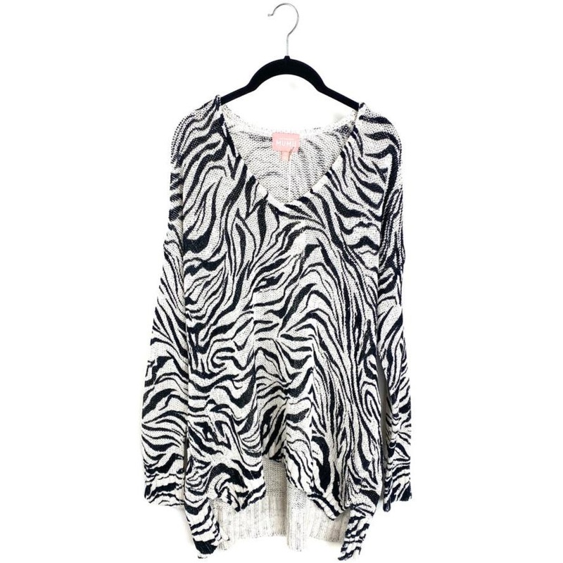 Brand new - donated from the designerShow Me Your Mumu oversized zebra printknit sweater with v-necklineSize extra small (00), medium (6-8) *very oversized*75% Cotton, 25% NylonEstimated Original Retail Price: $144*This is a sample piece donated from Show