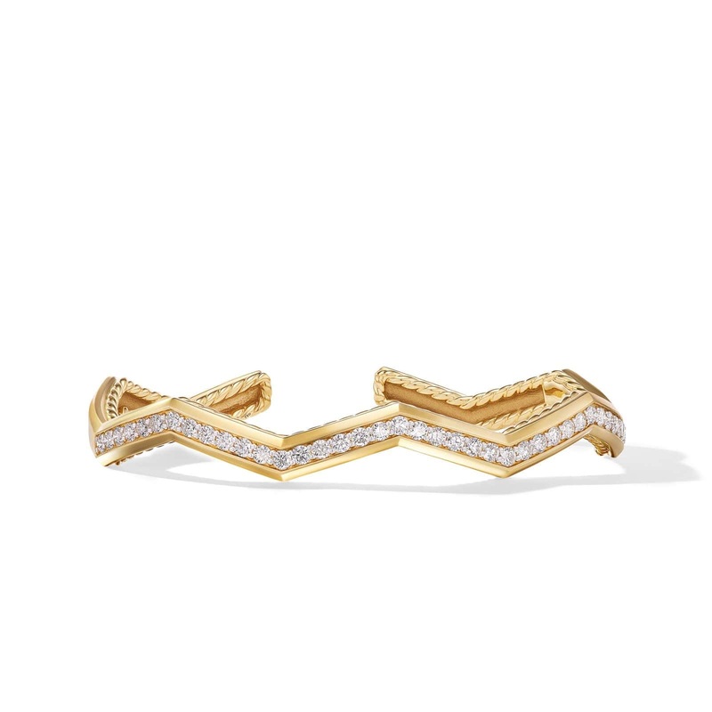 Zig Zag Stax Cuff Bracelet in 18K Yellow Gold with Diamonds, 5mm