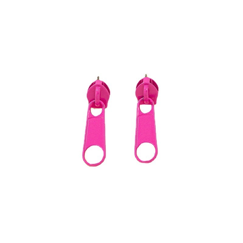 Zipper Earrings with a Pink Zip Spray Design and Color Blocking Fun
