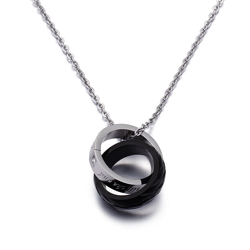 Zircon-Adorned Double-ring Interlocking Pendant, Titanium Steel Couples Necklace for Him