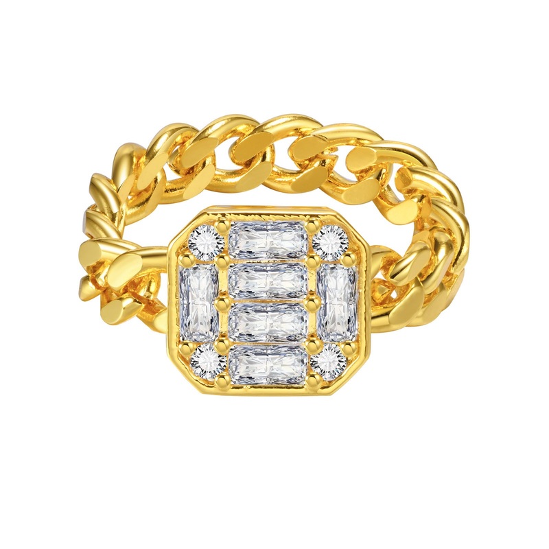 Introducing our stunning zircon chain ring, gold women's fashion ring accessories wholesale, designed to elevate your accessory collection with elegance and charm. Crafted from high-quality titanium steel, this ring showcases a captivating chain design ado
